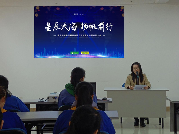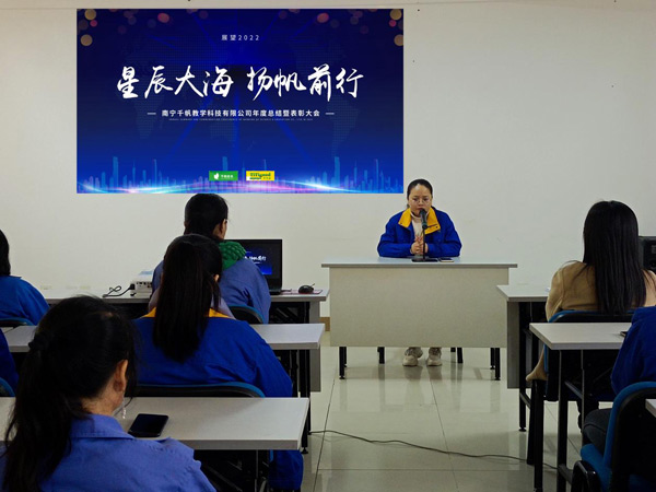 2022年1月28日,南寧千帆教學(xué)科技有限公司2021年度總結(jié)暨表彰大會隆重舉行,認真總結(jié)2021年度取得的各項成績及 對2022年的規(guī)劃,同時表彰2021年度為公司發(fā)展作出突出貢獻的“生產(chǎn)標兵”、“優(yōu)秀員工”和“優(yōu)秀管理干部”代表 。會場內(nèi)充滿了喜慶的氣氛,洋溢著千帆人火熱的激情。